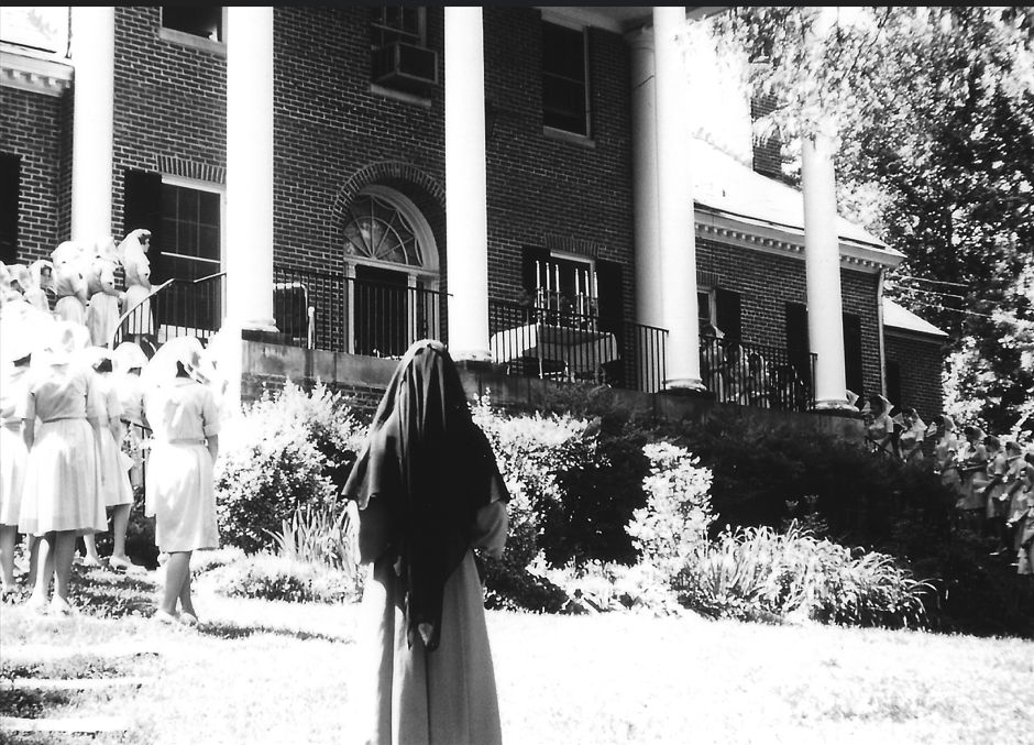 Young women attend an outdoor mass at D’Youville Academy in 1962. Photograph is from Tom Reilly.
